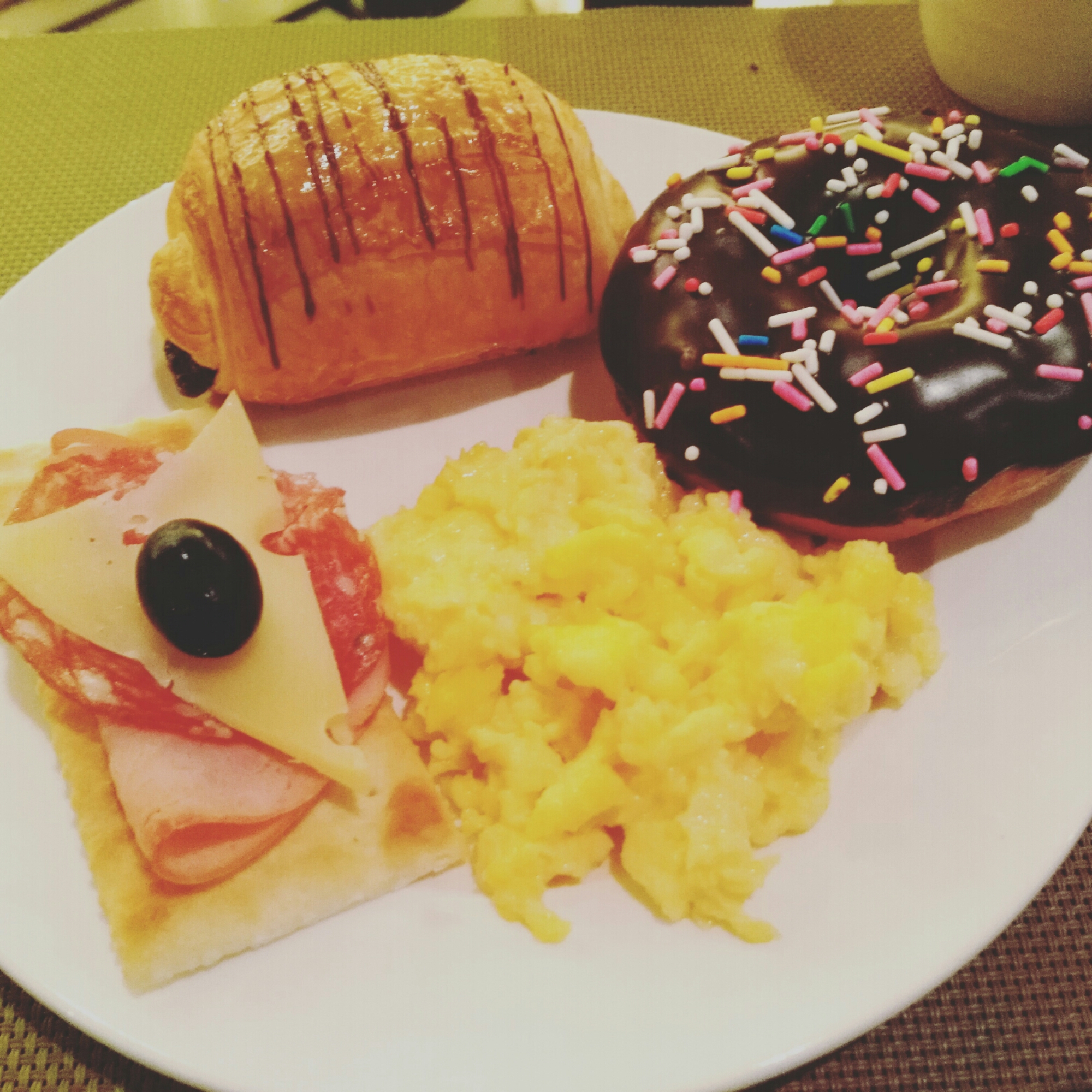 A real #American breakfast! 🍴 In #China, donuts that taste like real donuts and CHEESE! are so hard to come by. We’ll pay a fortune just for a good old-fashioned meal once in a while. The Chinese usually eat soup, dumplings, fried bread, or salad for breakfast, which isn’t my cup of tea. But we’re staying at the Hilton for a couple days – in China, the nice hotels have both an American and a Chinese buffet – makes for quite the array! 🙂