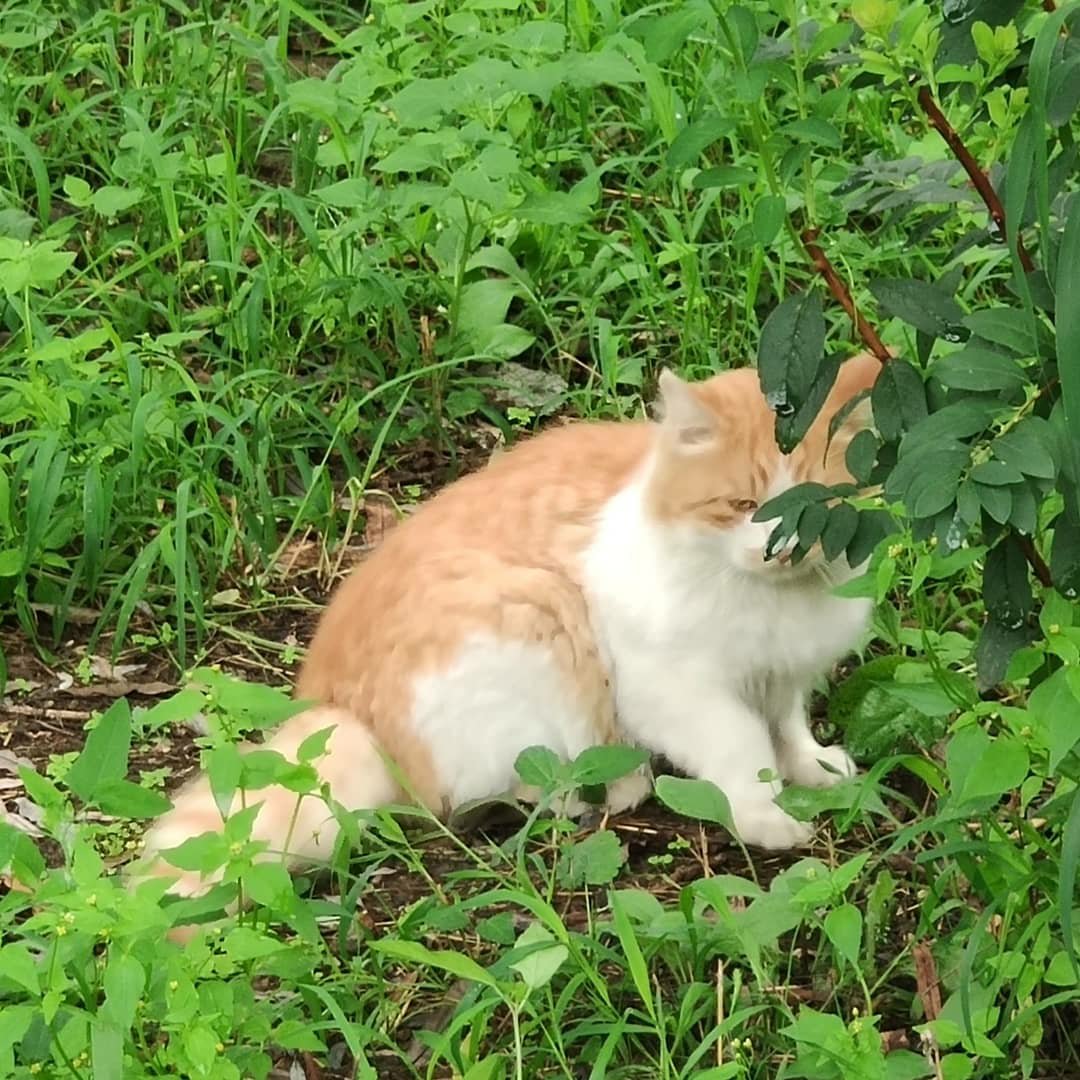 Say ‘Hello’ to our neighborhood fluff-ball. He was not super impressed with me and I am deathly allergic of him. But we eyed each other from a distance and he ignored me graciously while I praised his floofiness from afar 😂